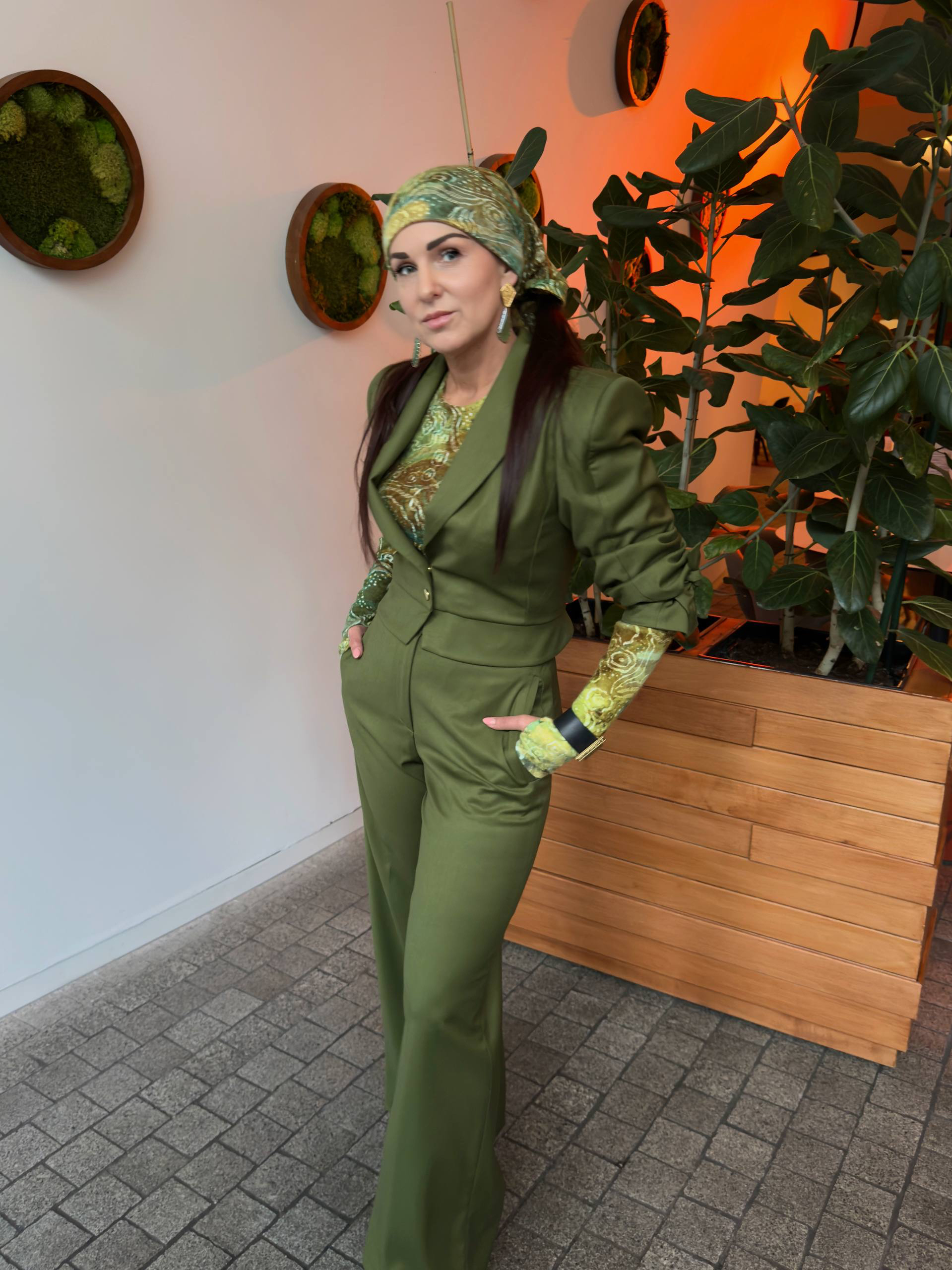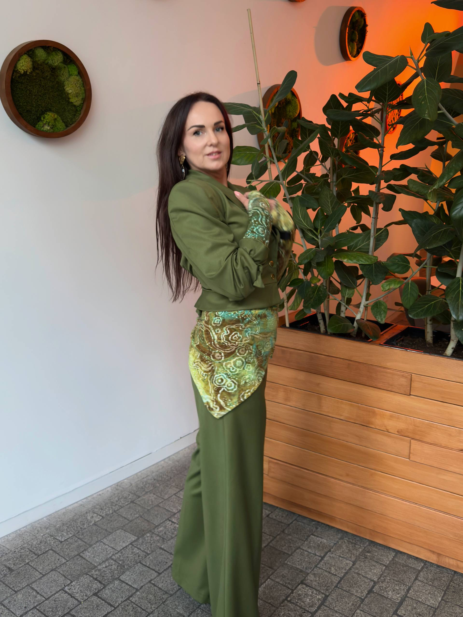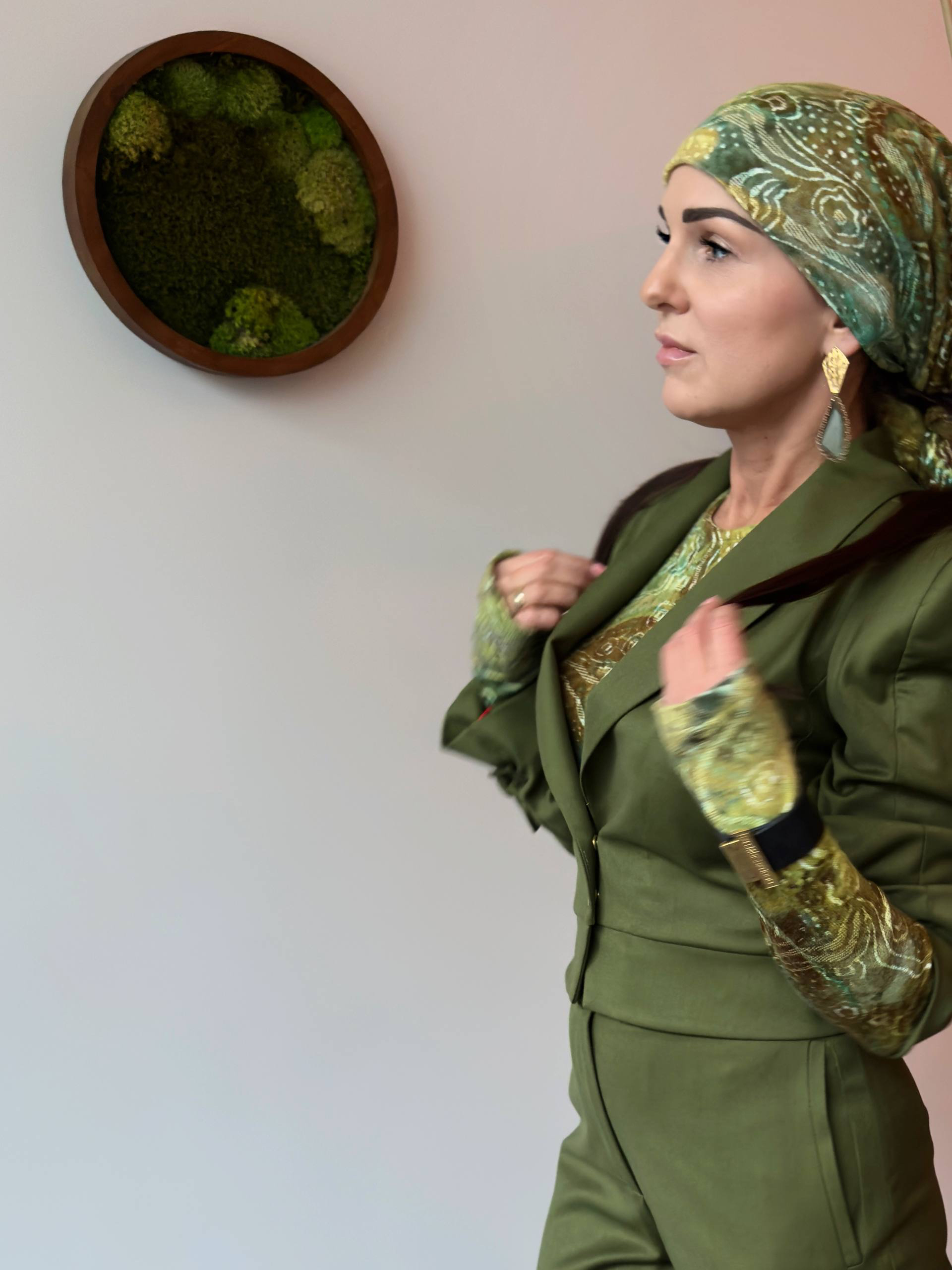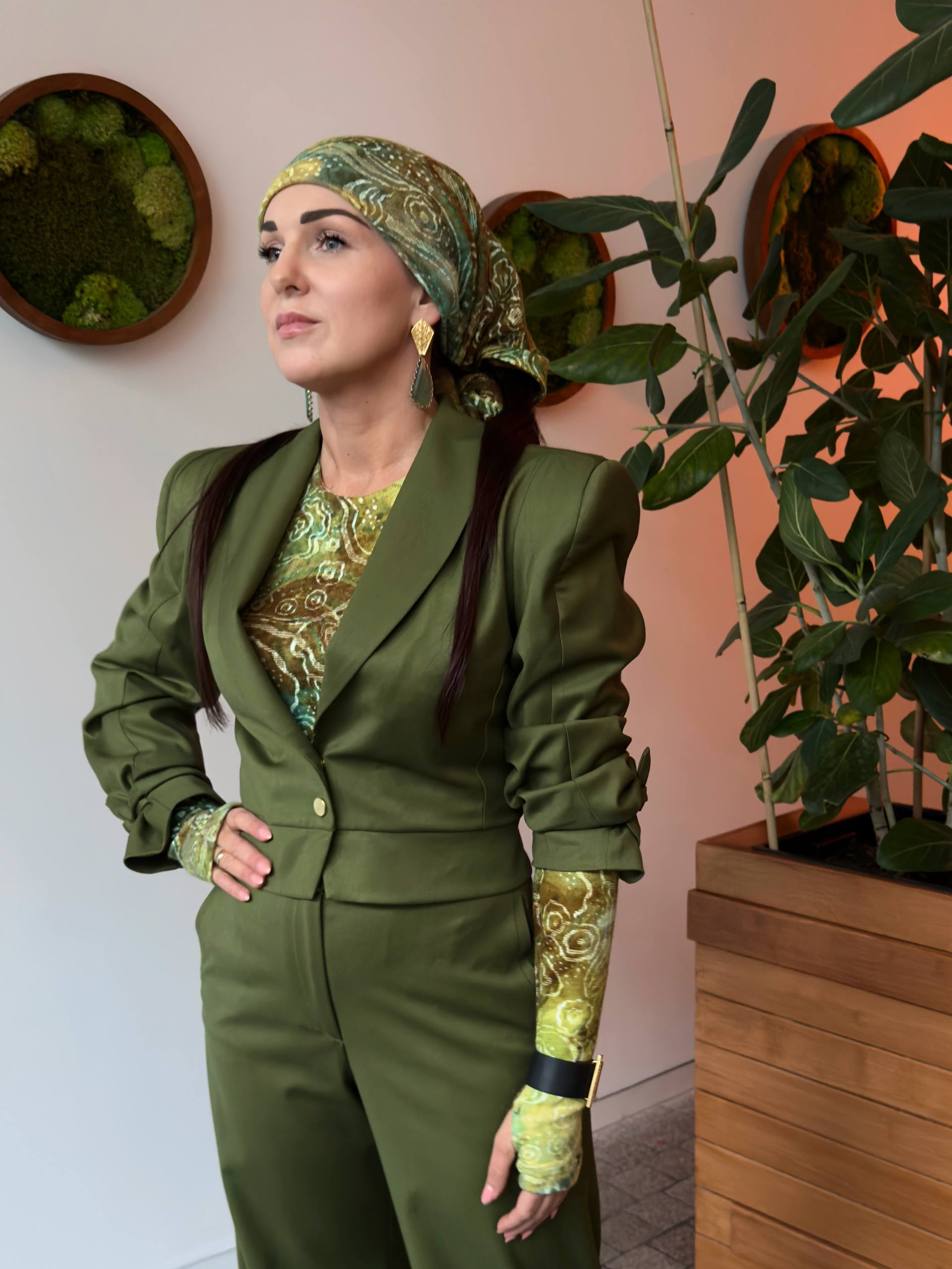 • materiał: dzianina sweterkowa w odcieniach zieleni oraz w brązie