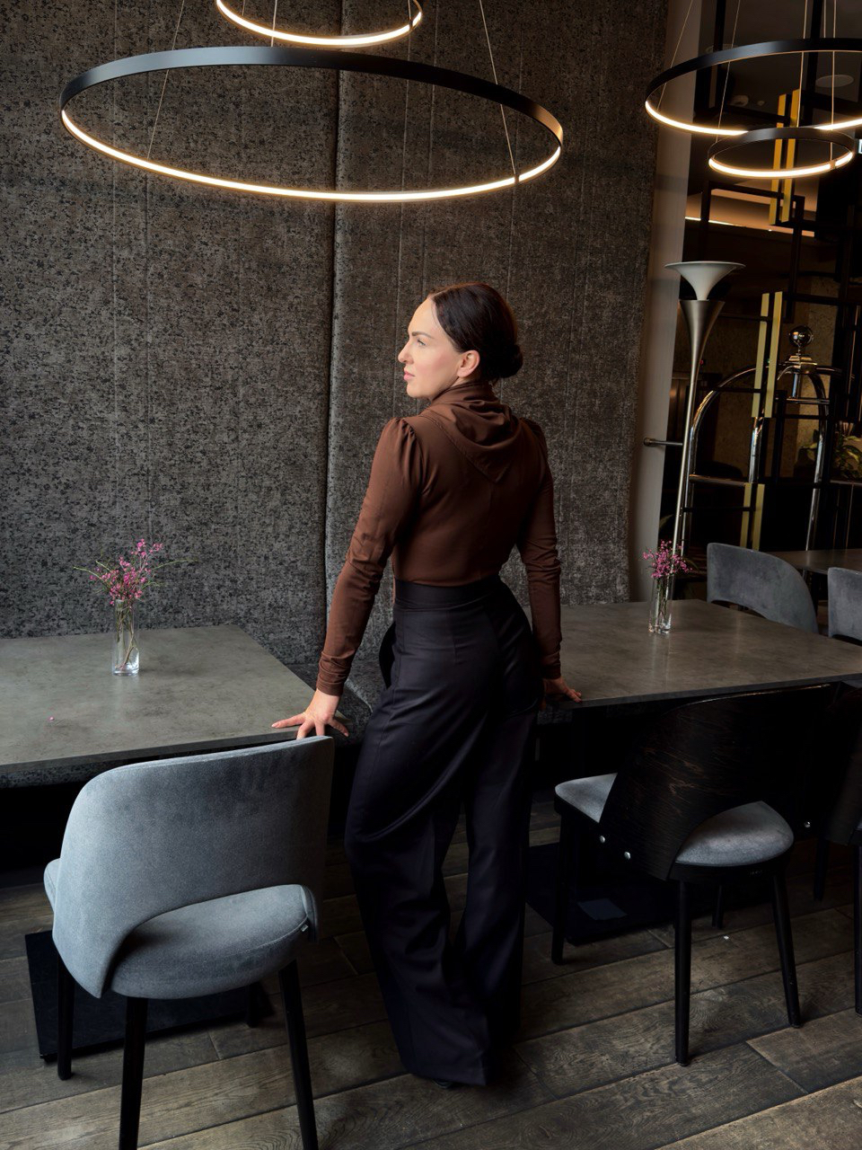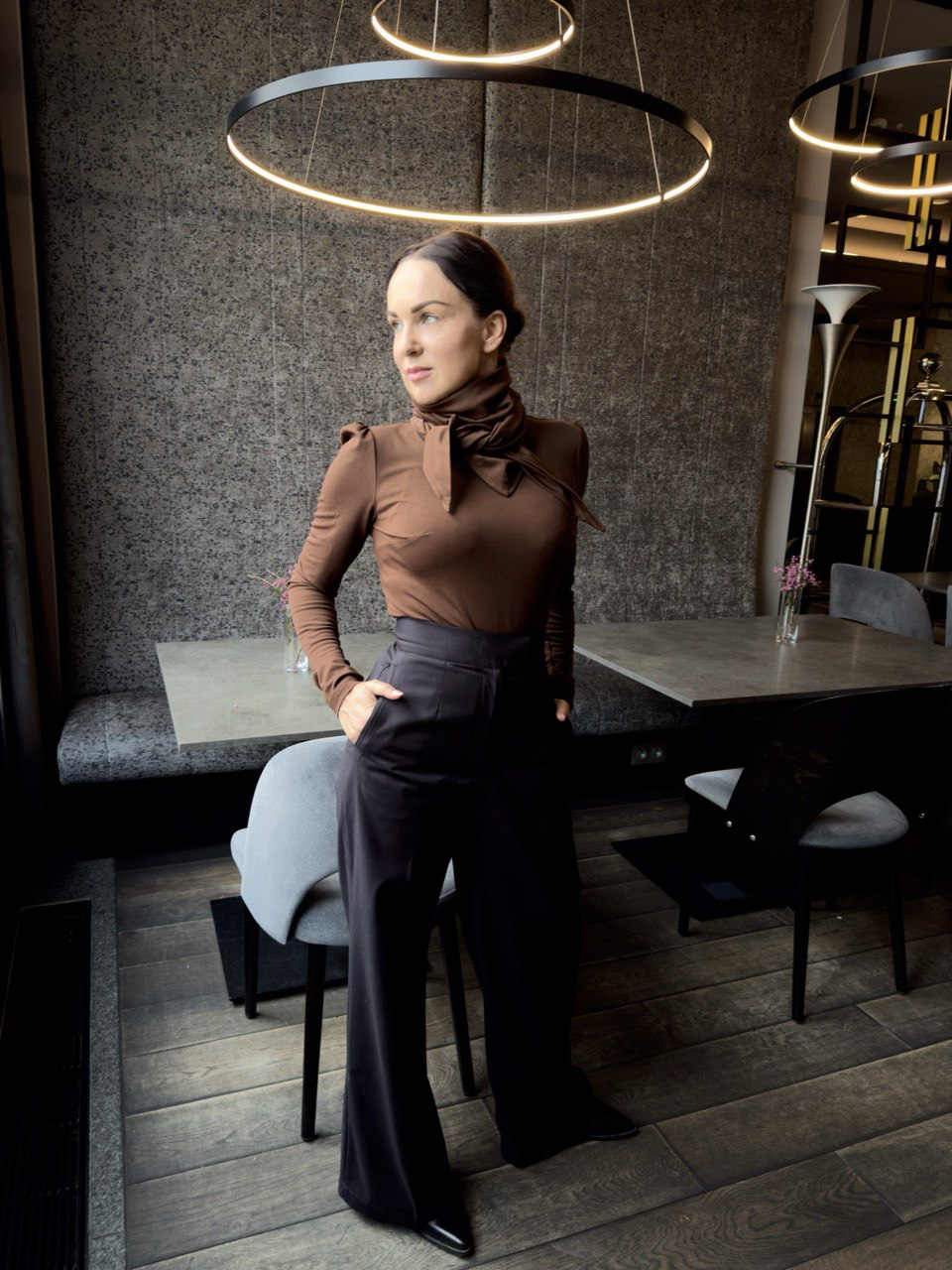 Body stanowi bazę stylizacji kapsułowych. Łączy się ze spodniami Królowa Kier, Caryca, Stagioni oraz ze spódnicami z kolekcji. Buduje sylwetkę i utrzymuje spójność wizerunku w codziennych i formalnych zestawach.